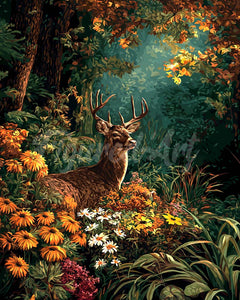 Diamond Painting - Ciervo entre flores de otoño