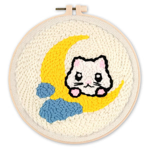 Punch Needle Gato en la luna