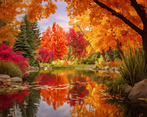 Diamond Painting - Cabaña junto al lago en otoño 40x50cm con bastidor montado