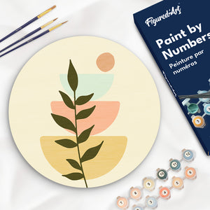 Pintar por Números en Disco de Madera - Patrón floral colorido