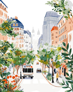 Bulevar de Ciudad en Acuarela