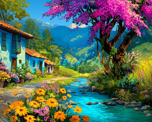 Diamond Painting - Atardecer de otoño junto a la cabaña 40x50cm con bastidor montado
