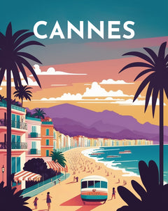 Diamond Painting - Póster de viaje atardecer en Miami 40x50cm con bastidor montado