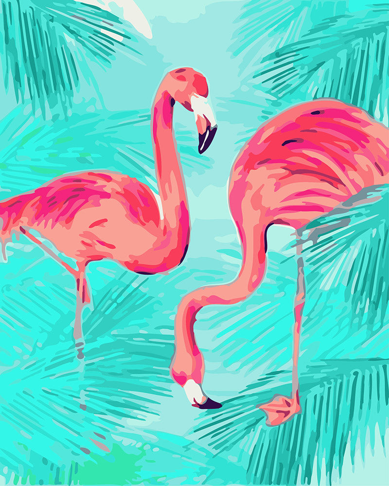 Modelo: Dúo de flamencos rosas y follajeIntermedio