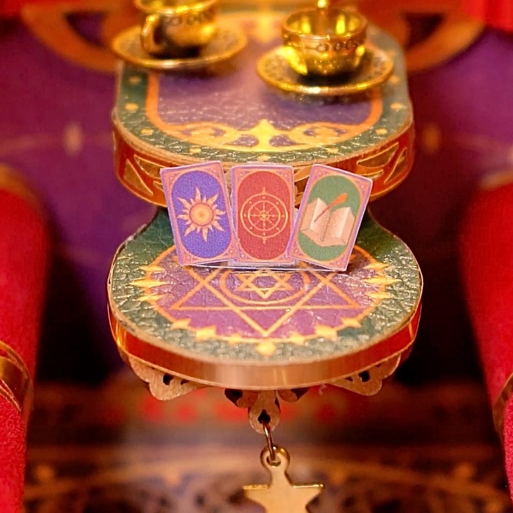 Este book nook recrea el interior de un vagón con un encanto mágico, capturando los detalles de un viaje encantado. Los asientos acolchados y las cortinas rojas de la ventana enmarcan un compartimento acogedor, mientras que una pequeña mesa entre los asientos sostiene una baraja de cartas dispersa, sugiriendo hechizos, juegos o destinos aún por revelar. Sutiles detalles mágicos dejan entrever que el pasajero no es un viajero cualquiera, y una pregunta curiosa queda suspendida en el aire: ¿cuál será el destino de este misterioso mago y qué aventura le espera al final del viaje?