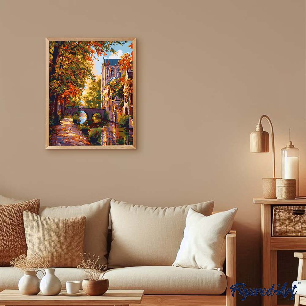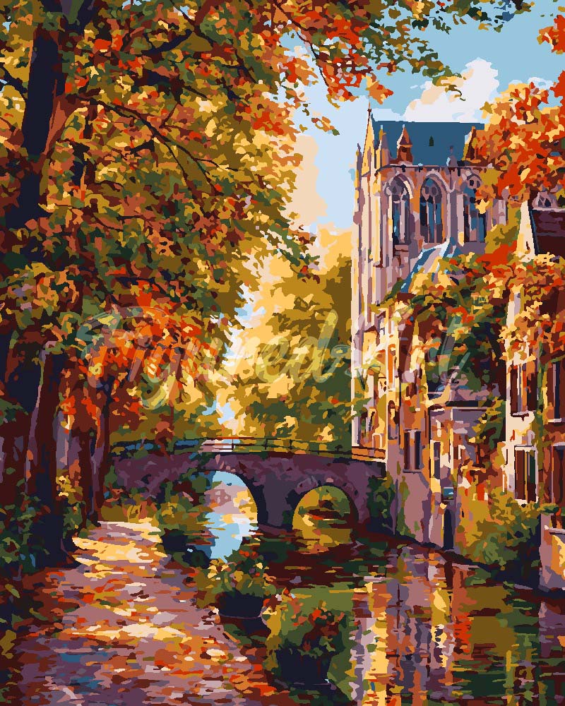 Pintar por numeros Figured'Art - Pueblo ribereño en otoño