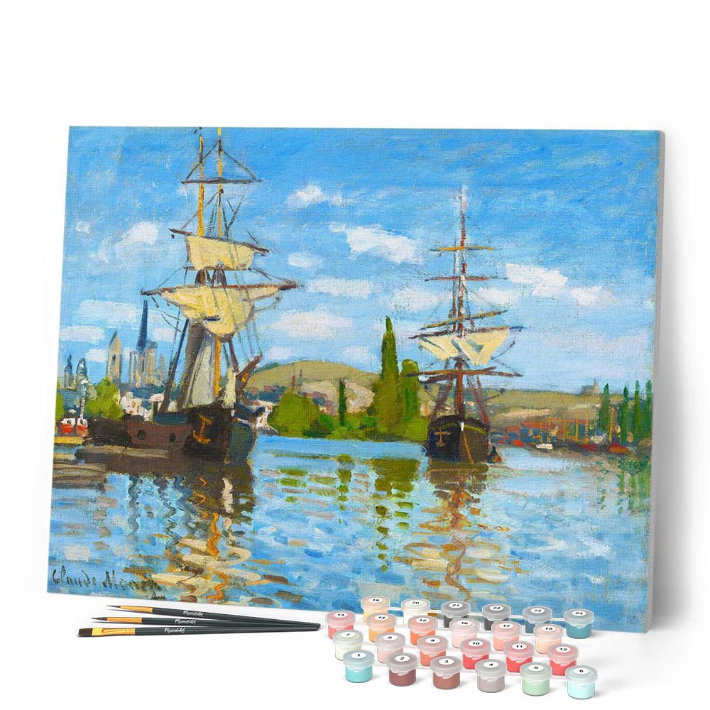 Modelo: Barcos navegando en el Sena en Rouen - Monet