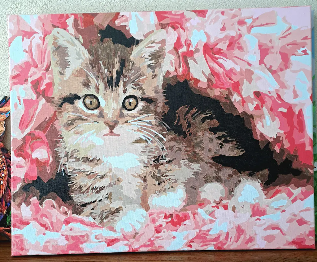 Kit completo de pintar por números con el lienzo estirado en un bastidor de madera ya montado. 100% listo para ser usado.