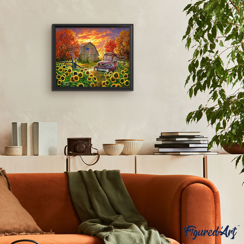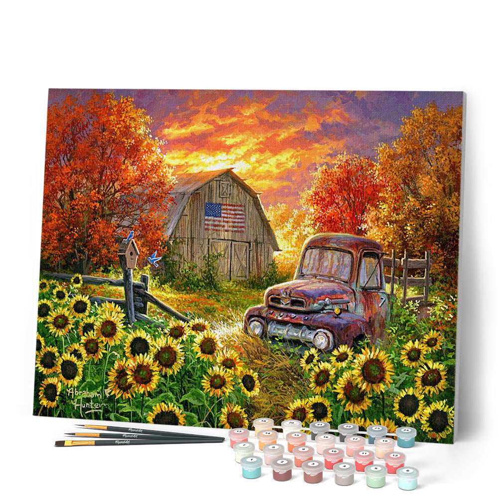 Pintar Por Números - Girasoles delante del granero - Figuredart - Avanzado Paisajes Flores Novedades