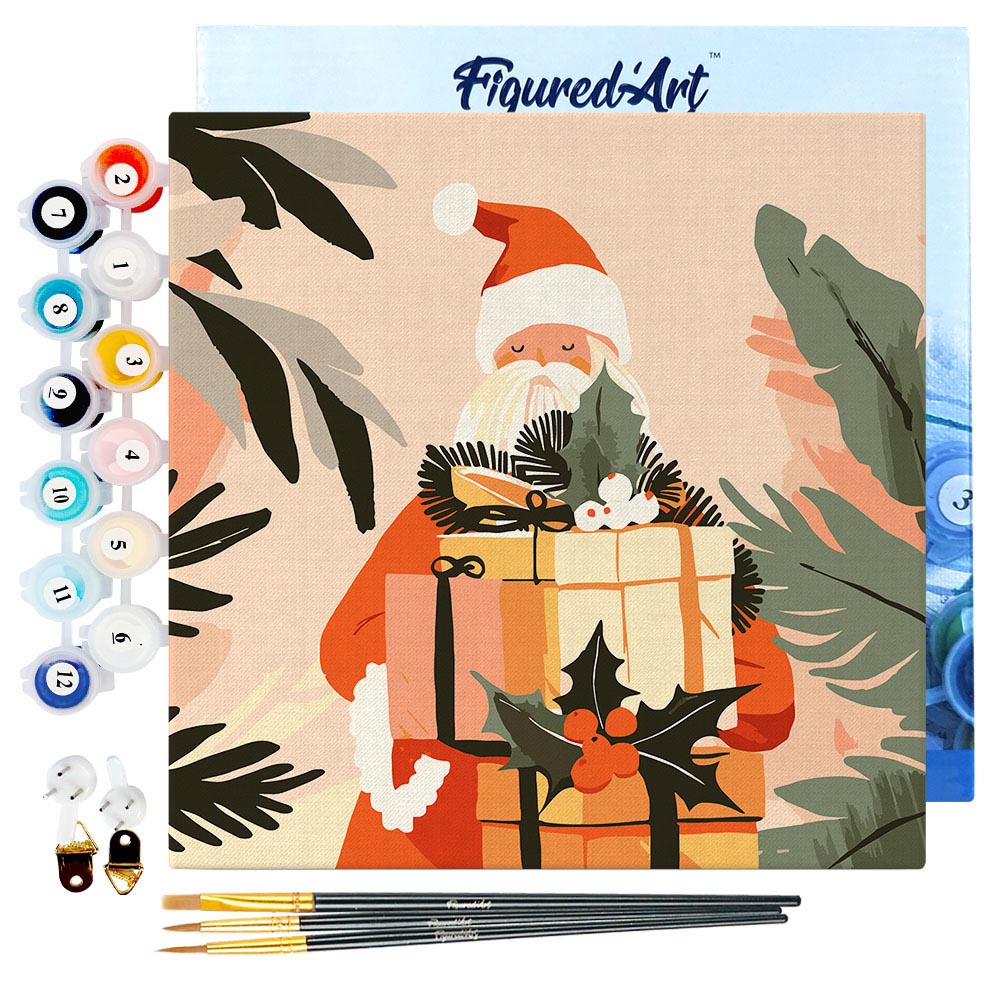 Mini Pintura por Números 20x20cm con bastidor - Papá Noel con regalos