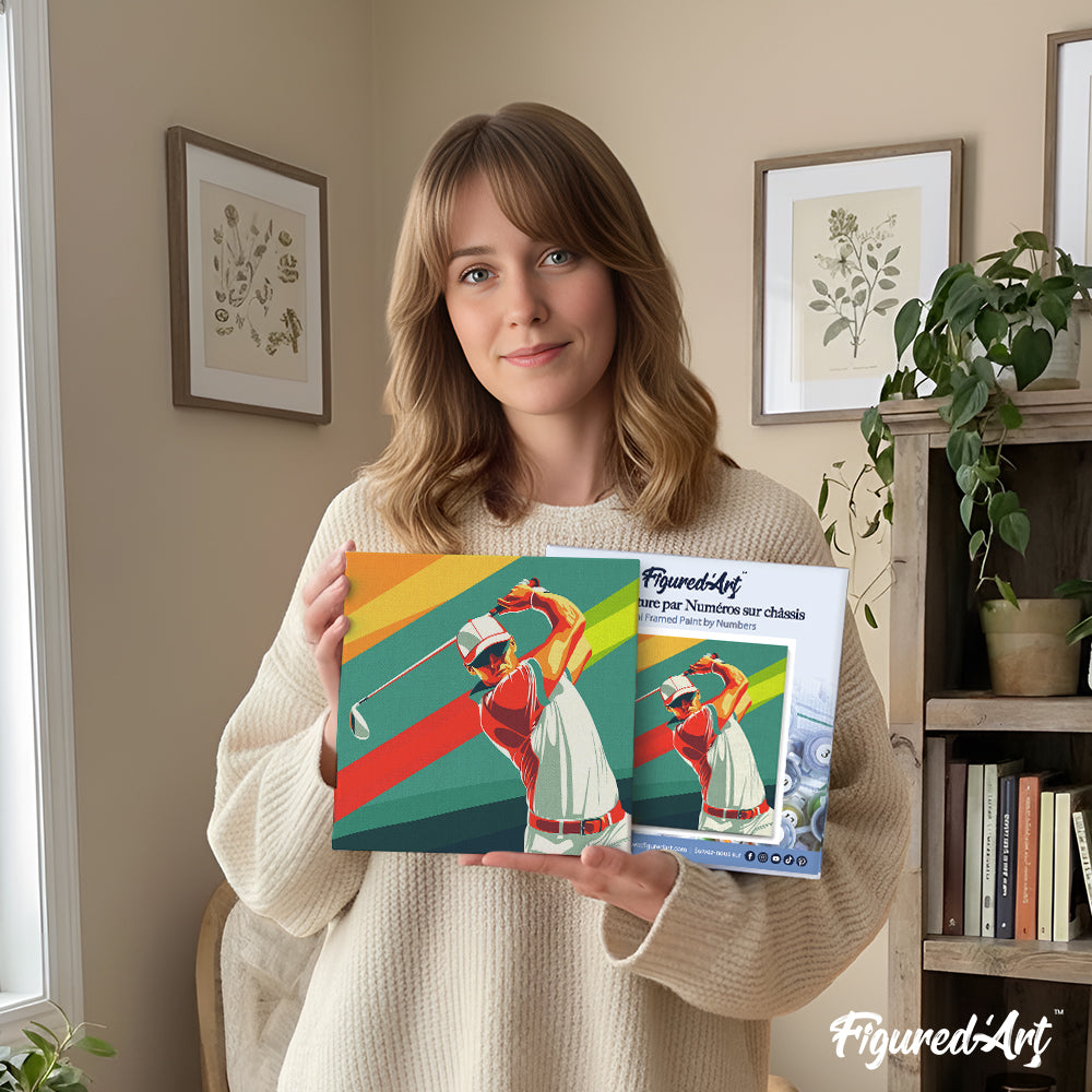 Modelo: Mini Pintura por Números 20x20cm con bastidor - Póster Deportivo de Golf