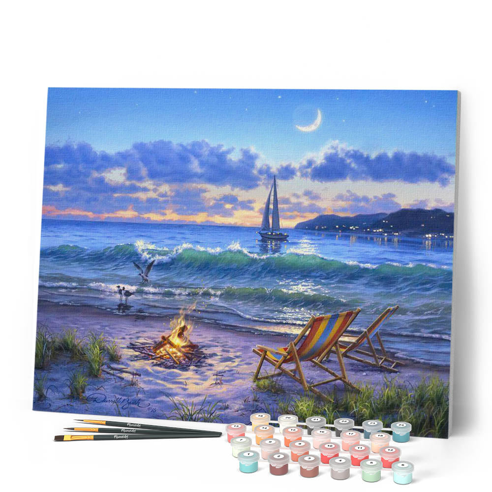 Pintar Por Números - Vista A La Playa - Figuredart - Fácil Paisajes Novedades