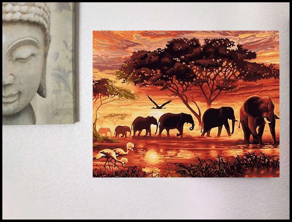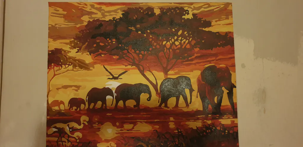 Los elefantes al atardecer son para mi mejor amiga. He disfrutado mucho — muy luminoso y relajante. Siempre contenta con Figured'Art.