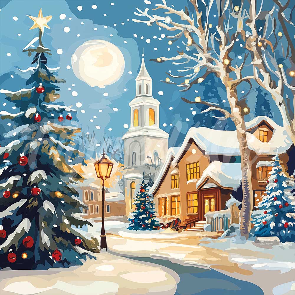 Modelo : Mini Diamond Painting 25x25cm - Calle navideña nevada
