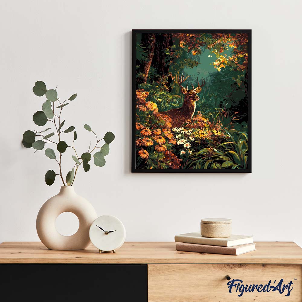 Pintar por numeros Figured'Art - Ciervo entre flores de otoño