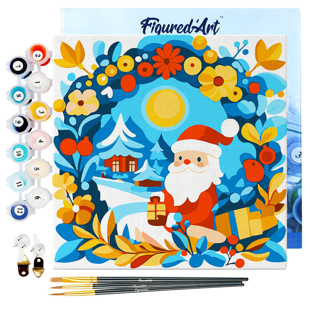 Modelo: Mini Pintura por Números 20x20cm con bastidor - Corona y Papá Noel