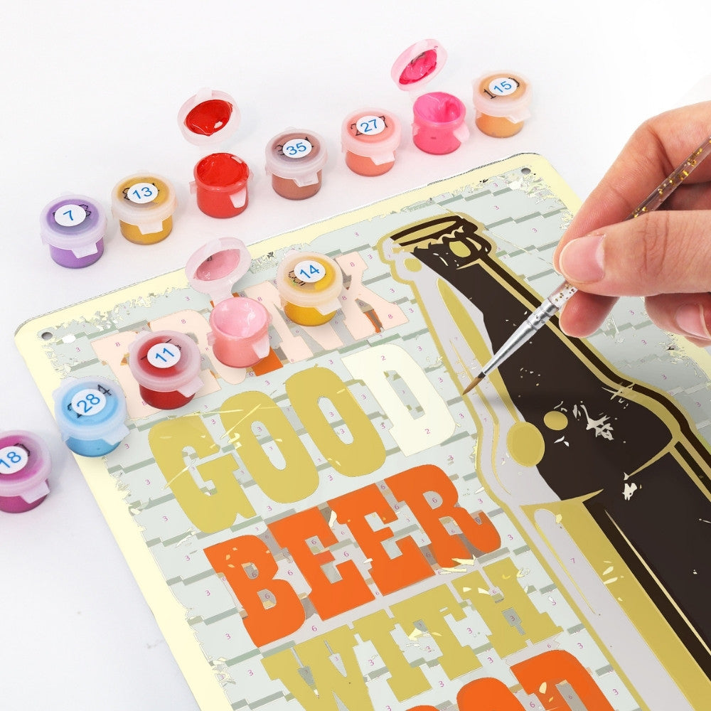 Añade un toque de encanto vintage de pub a tu espacio con esta lámina de pintar por números adultos de Figured'Art. Cada póster de metal con pintura por números presenta un diseño retro nítido que evoca la acogedora atmósfera de un pub clásico. Perfecto para amantes de la cerveza y entusiastas de las manualidades. Este kit de pintura ofrece una forma divertida y relajante de crear tu propio arte mural estilo pub. Una vez que completes tu obra, puedes colgar fácilmente el póster usando la cuerda de cáñamo incluida o fijarlo con tornillos (no incluidos). Ideal para decorar bares, pubs, garajes, cocinas o cualquier rincón donde se reúnan amantes de la cerveza. Disfruta de un hobby creativo mientras añades personalidad a tu espacio. 🍺