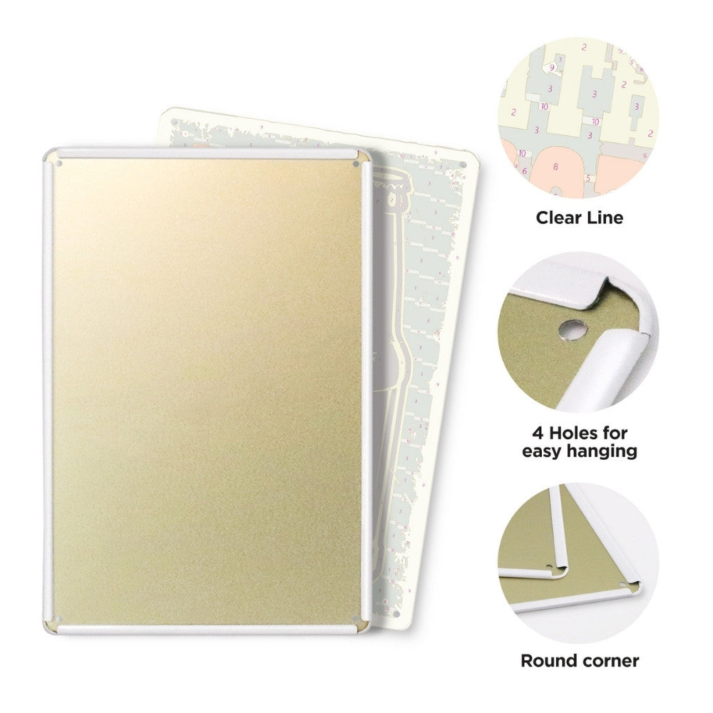 4) ¡Eso es todo! ¡Bravo! Admira, comparte, cuelga o enmarca tu trabajo. El kit también incluye 2 tornillos y 2 ganchos.