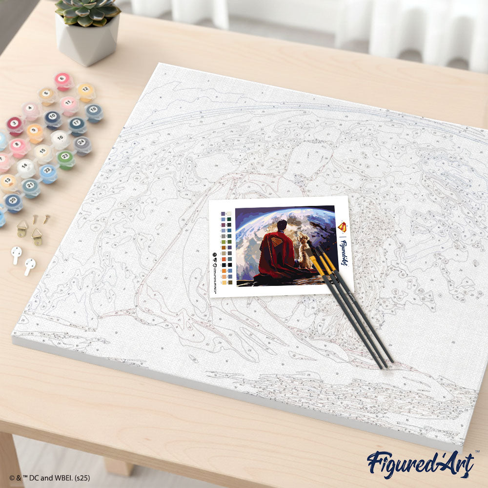 ✅ 1 lienzo de lino numerado con el diseño de Superman listo para pintar