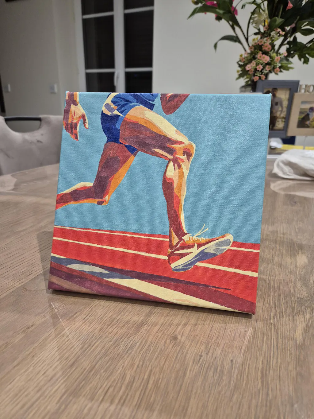 Modelo: Mini Pintura por Números 20x20cm con bastidor - Póster Deportivo de Atletismo