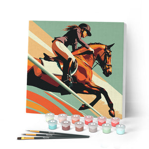 Mini Pintura por Números 20x20cm con bastidor - Póster Deportivo de Equitación