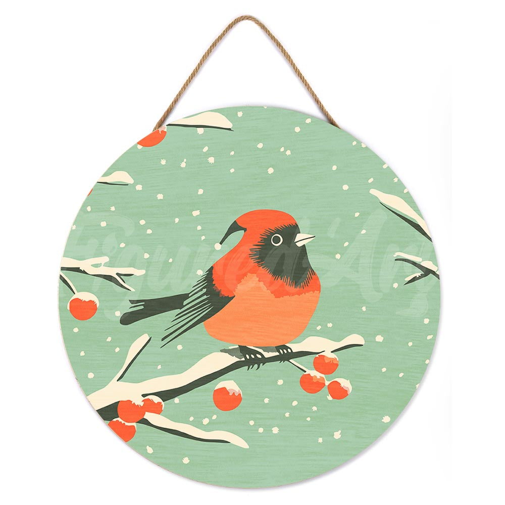 Modelo: Pintar por Números en Disco de Madera - Pájaro rojo de invierno
