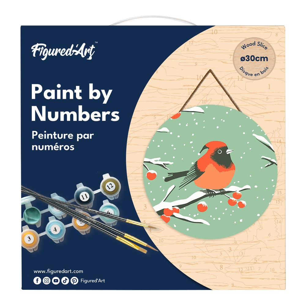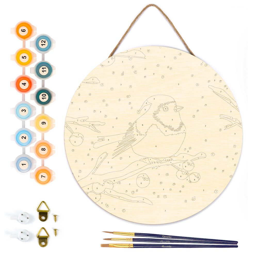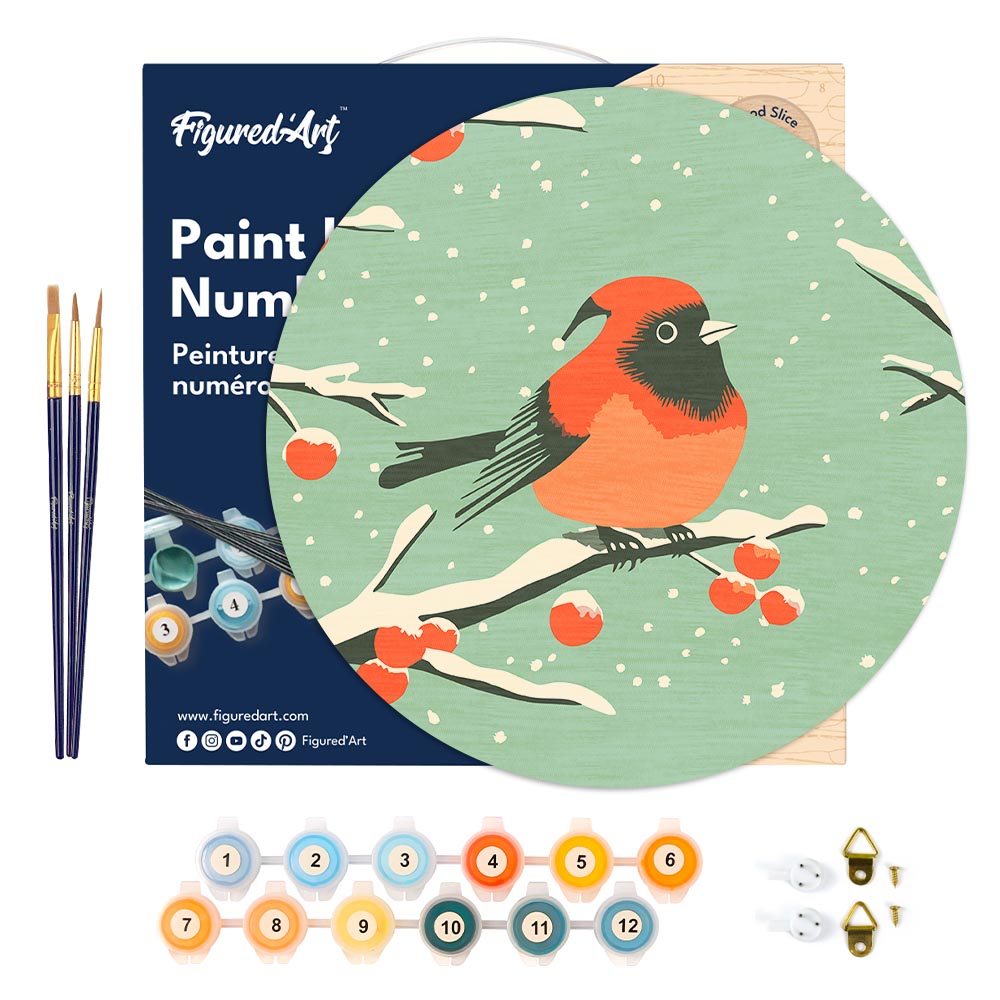 Pintar por Números en Disco de Madera - Pájaro rojo de invierno