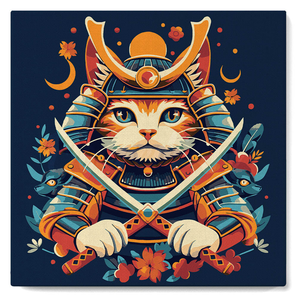 Modelo: Mini Pintura por Números 20x20cm con bastidor - Gato Samurái