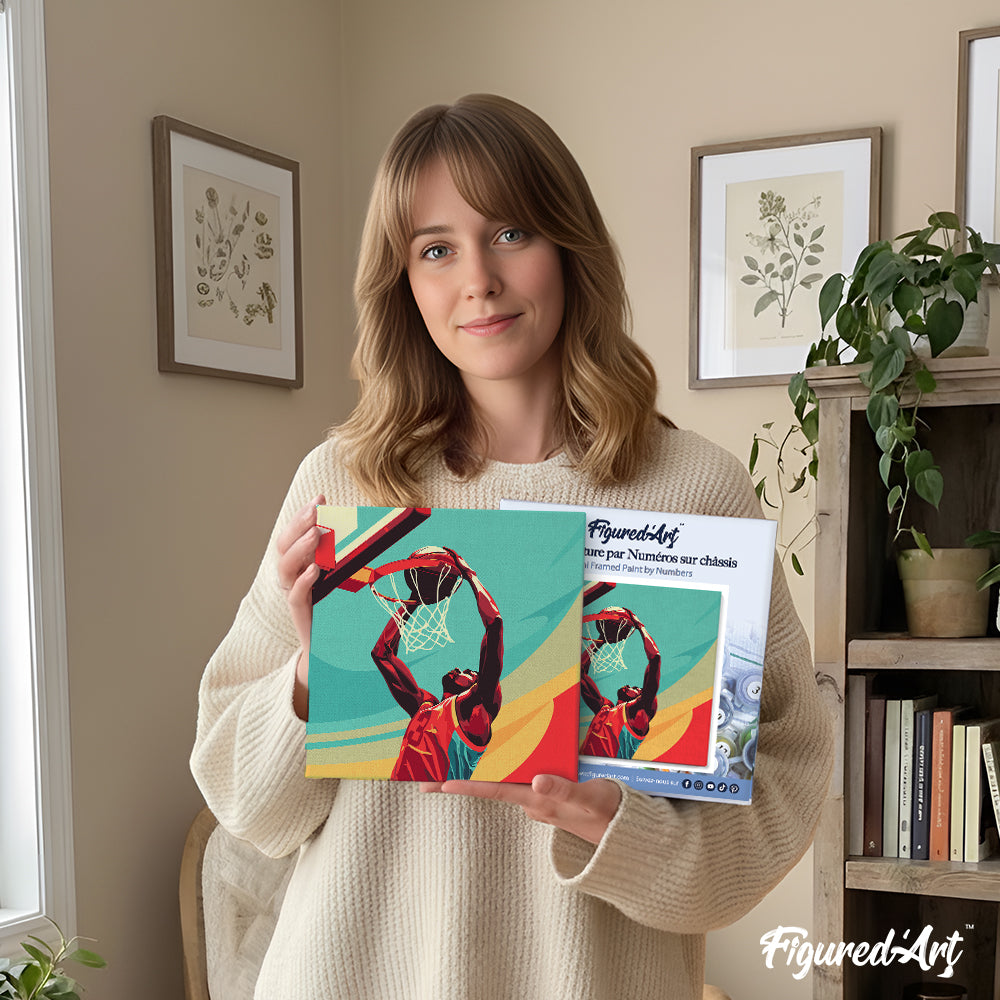 Modelo: Mini Pintura por Números 20x20cm con bastidor - Póster Deportivo de Baloncesto