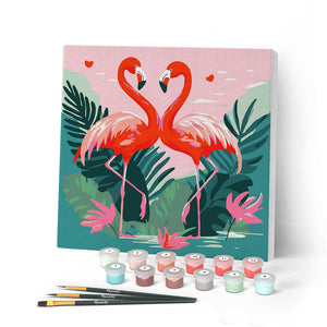 Mini Pintura por Números 20x20cm con bastidor Flamencos Tropicales