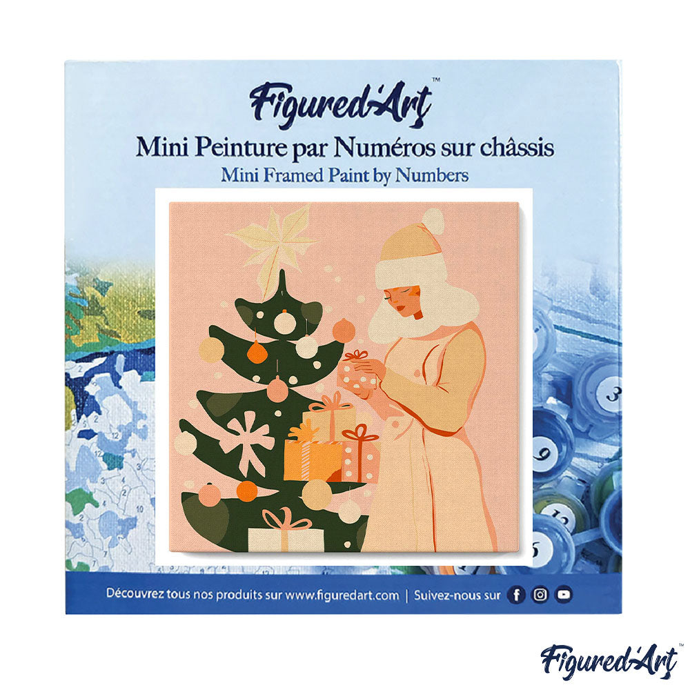 Mini Pintura por Números 20x20cm con bastidor - Mujer con árbol de Navidad