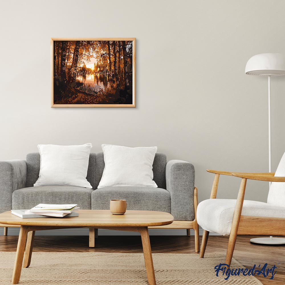 Pintar por numeros Figured'Art - Lago de Abedules Dorados