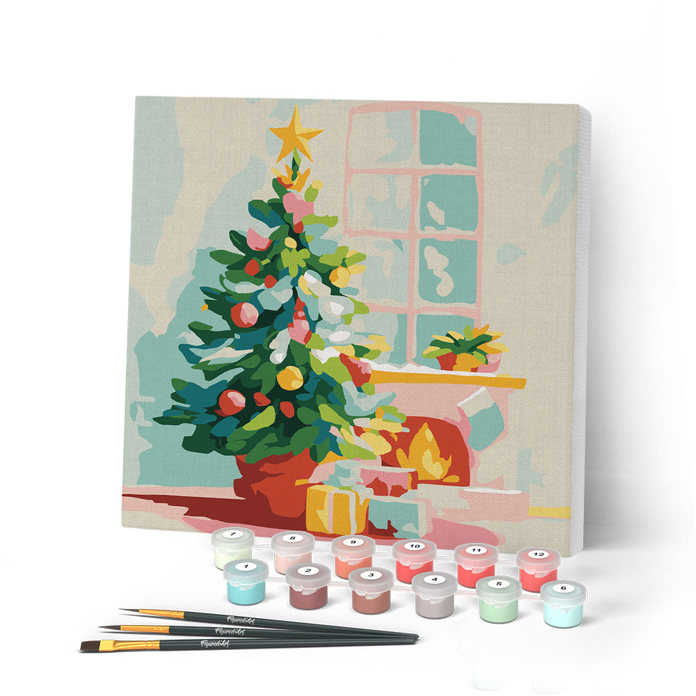 Modelo: Mini Pintura por Números 20x20cm con bastidor - Árbol de Navidad y chimenea
