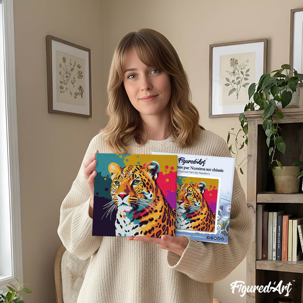 Modelo: Mini Pintura por Números 20x20cm con bastidor Arte Pop Abstracto de Leopardo
