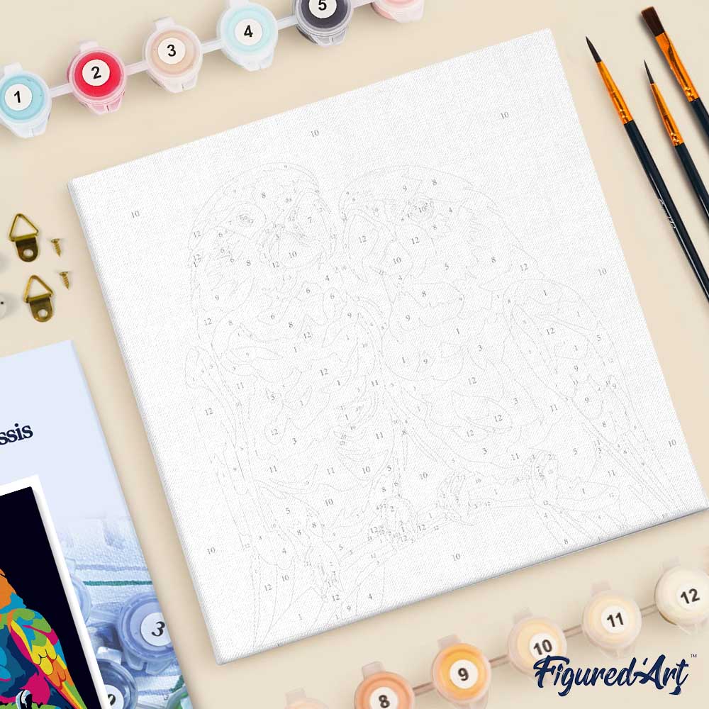 Este kit de pintura por números contiene todo lo necesario para realizar tu obra de arte: