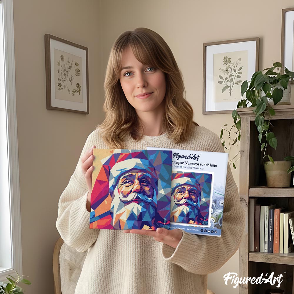 Mini Pintura por Números 20x20cm con bastidor - Papá Noel poligonal