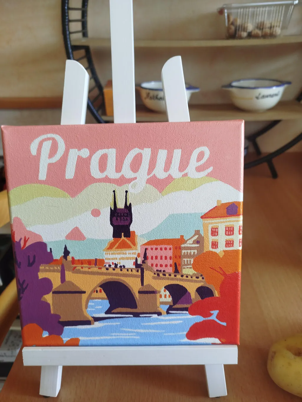 Modelo: Mini Pintura por Números 20x20cm con bastidor Póster de Viaje Praga