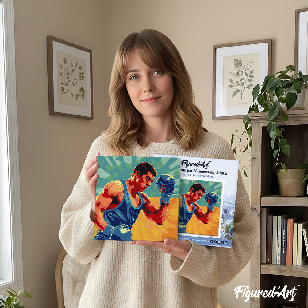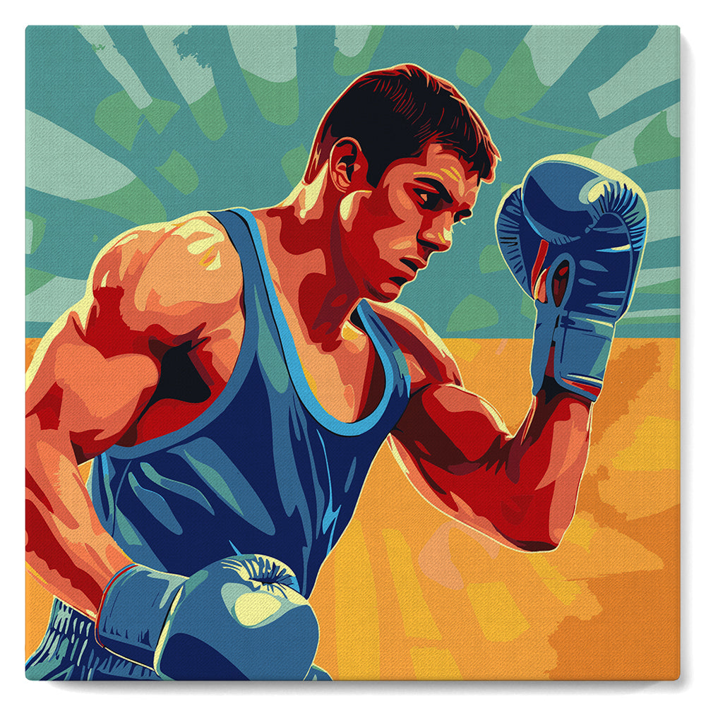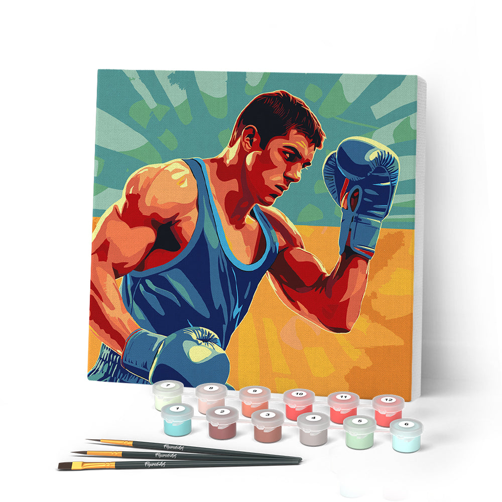 Modelo: Mini Pintura por Números 20x20cm con bastidor - Póster Deportivo de Boxeo