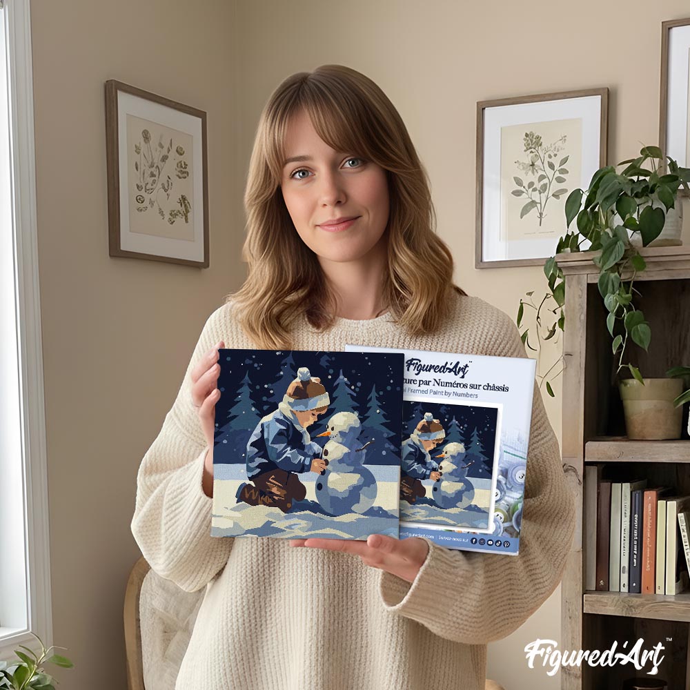 Modelo: Mini Pintura por Números 20x20cm con bastidor - Un niño y un muñeco de nieve