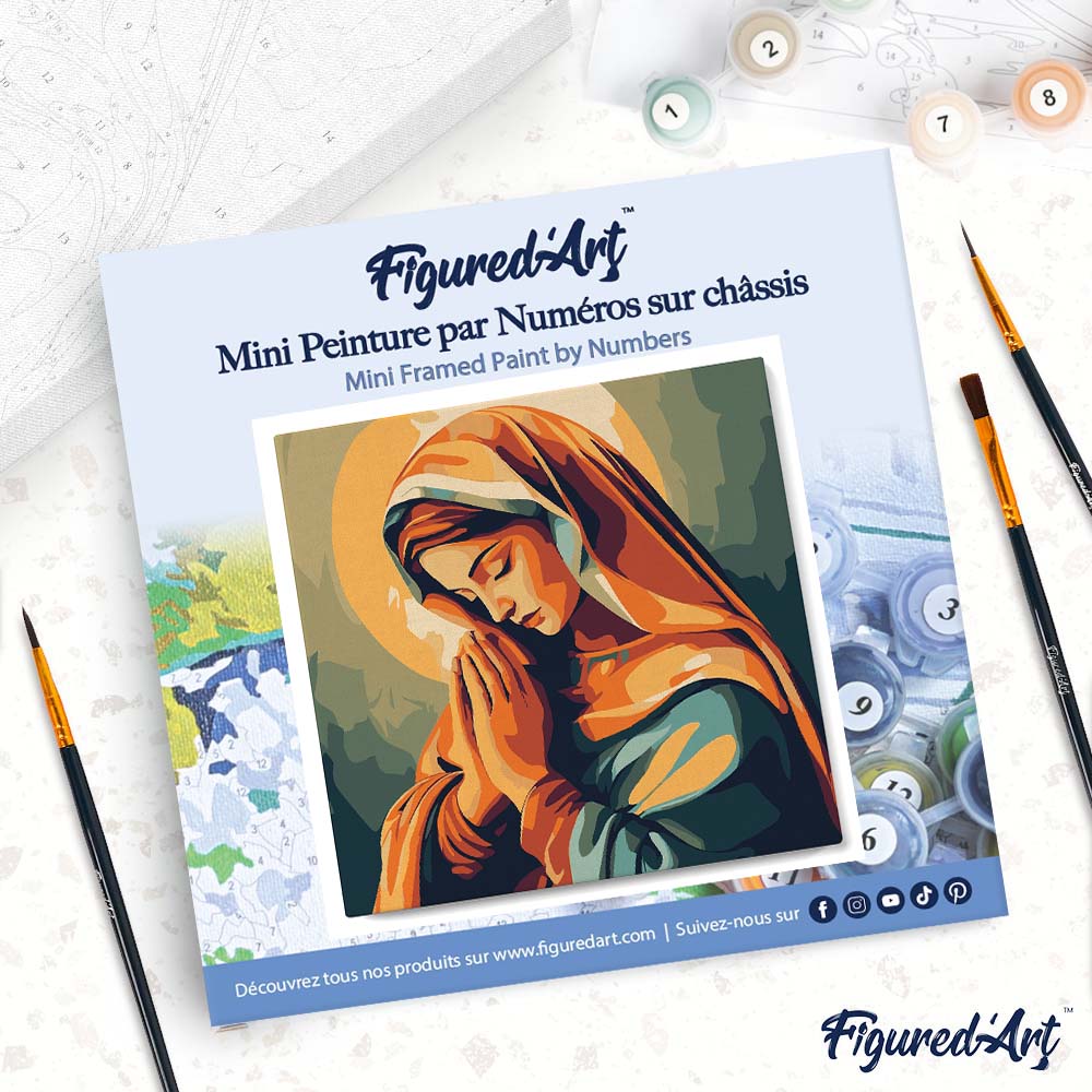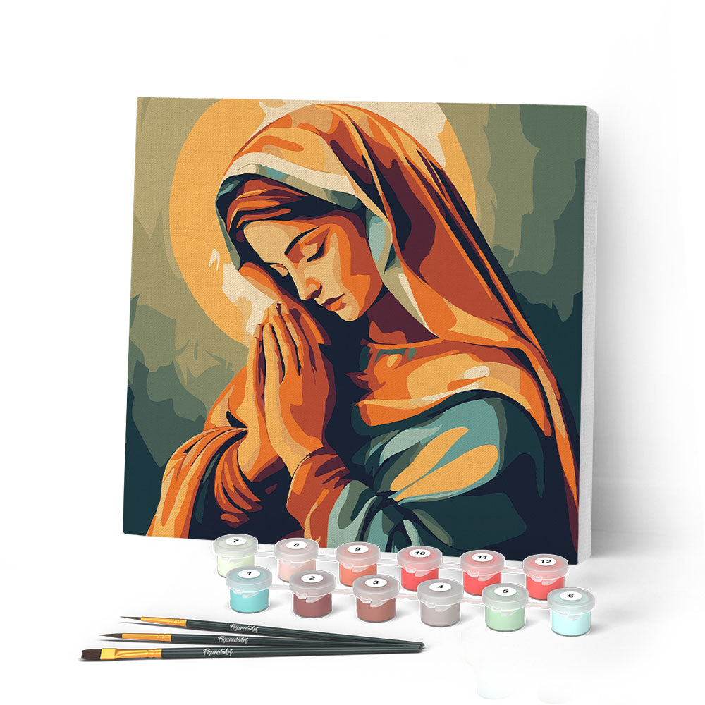 Modelo: Mini Pintura por Números 20x20cm con bastidor - Virgen María rezando