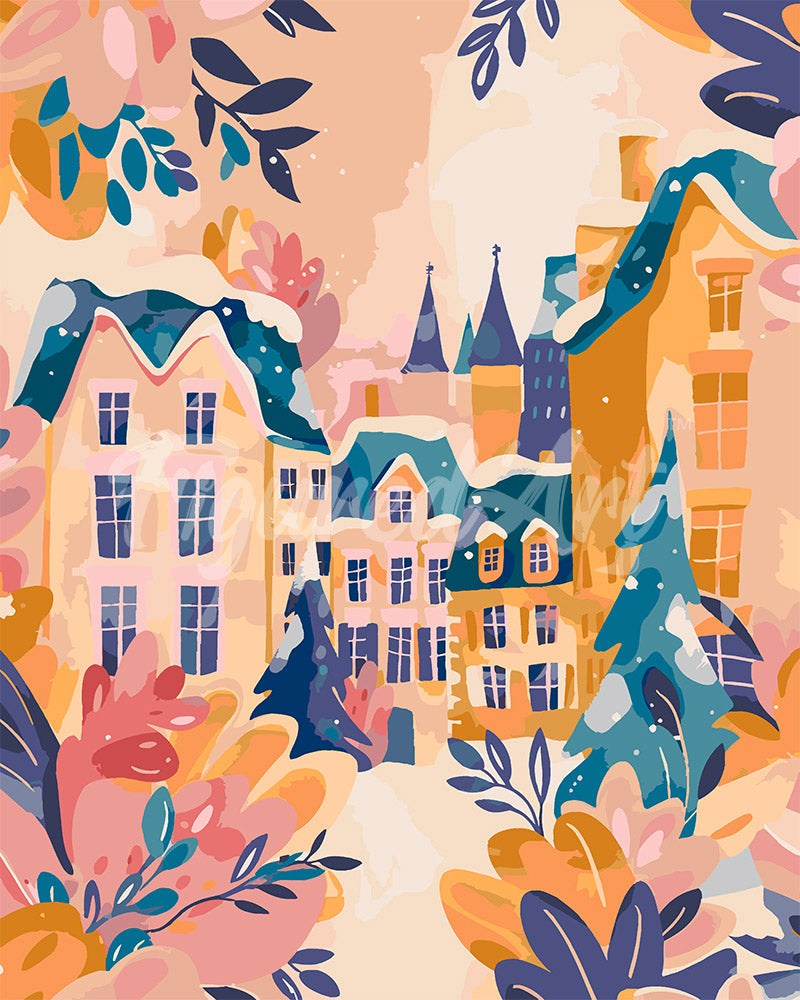Pintar por numeros Figured'Art - Pueblo nevado 2