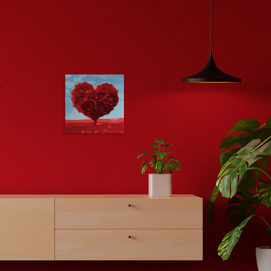 Modelo: Mini Pintura por Números 20x20cm con bastidor Árbol rojo del corazón