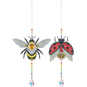 Carillón en Cristal Diamond Painting 5D Abeja con Mariquita 2 Piezas