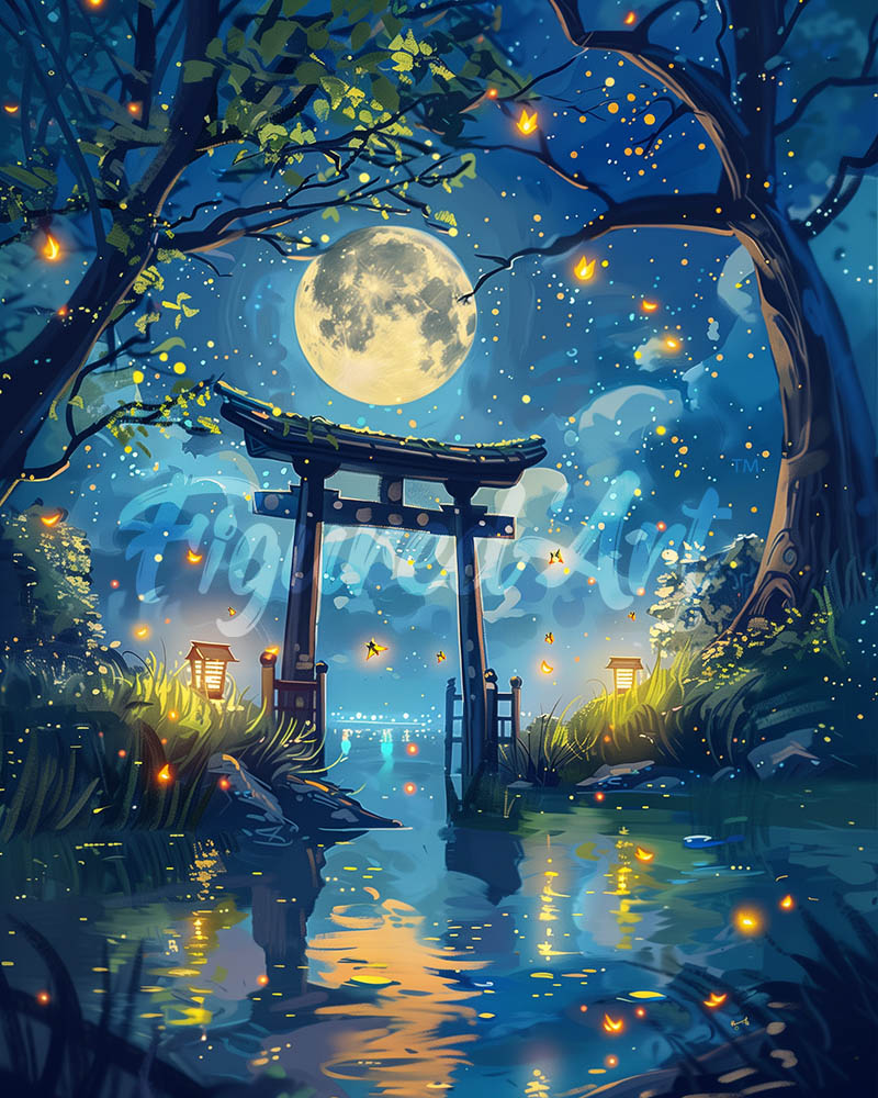 Modelo : Torii a la Luz de la Luna y Luciérnagas