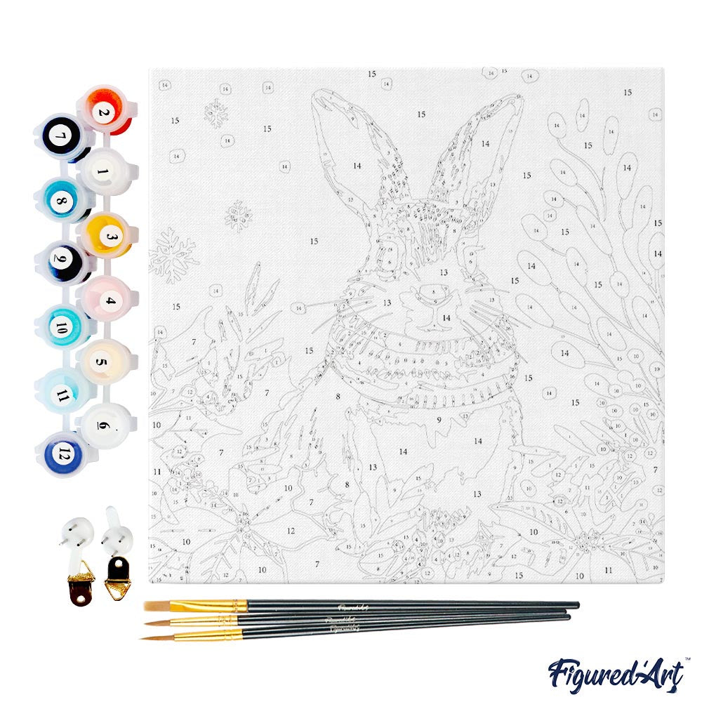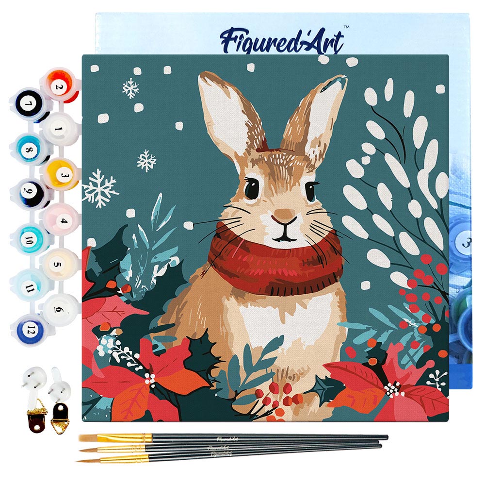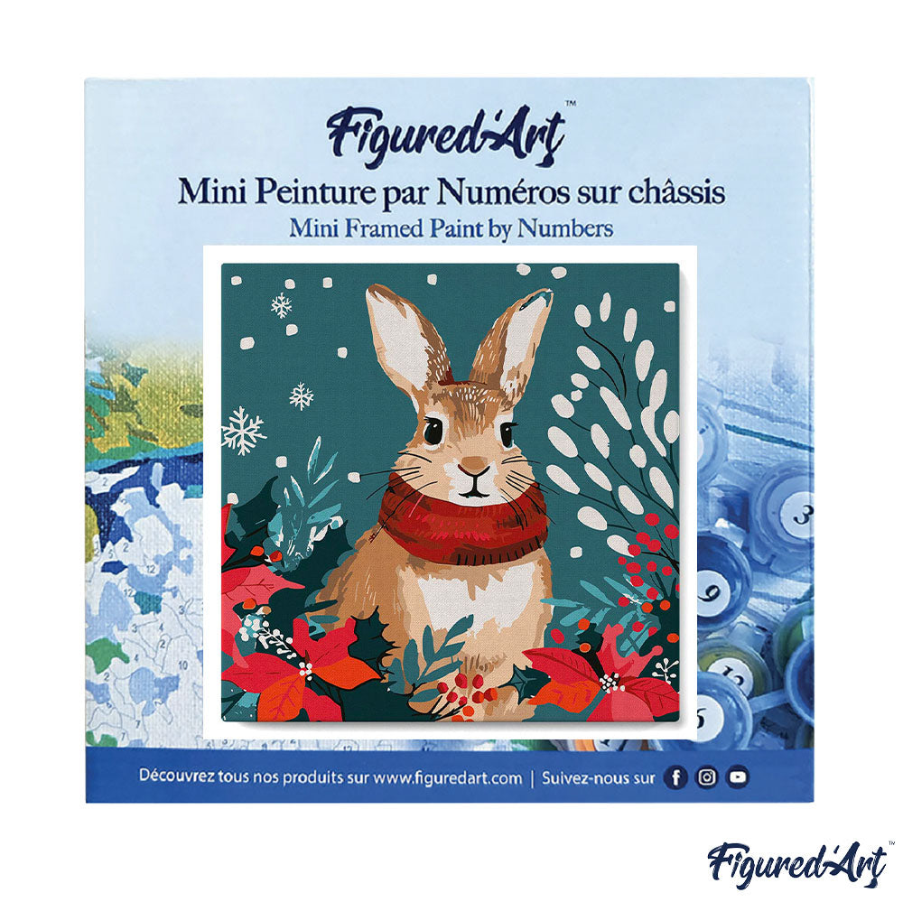 Mini Pintura por Números 20x20cm con bastidor - Conejito de Navidad