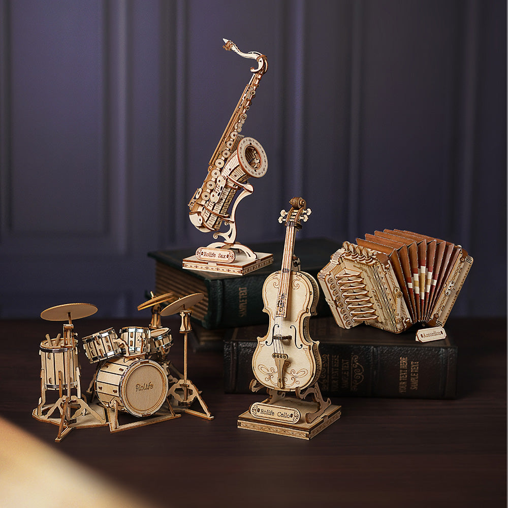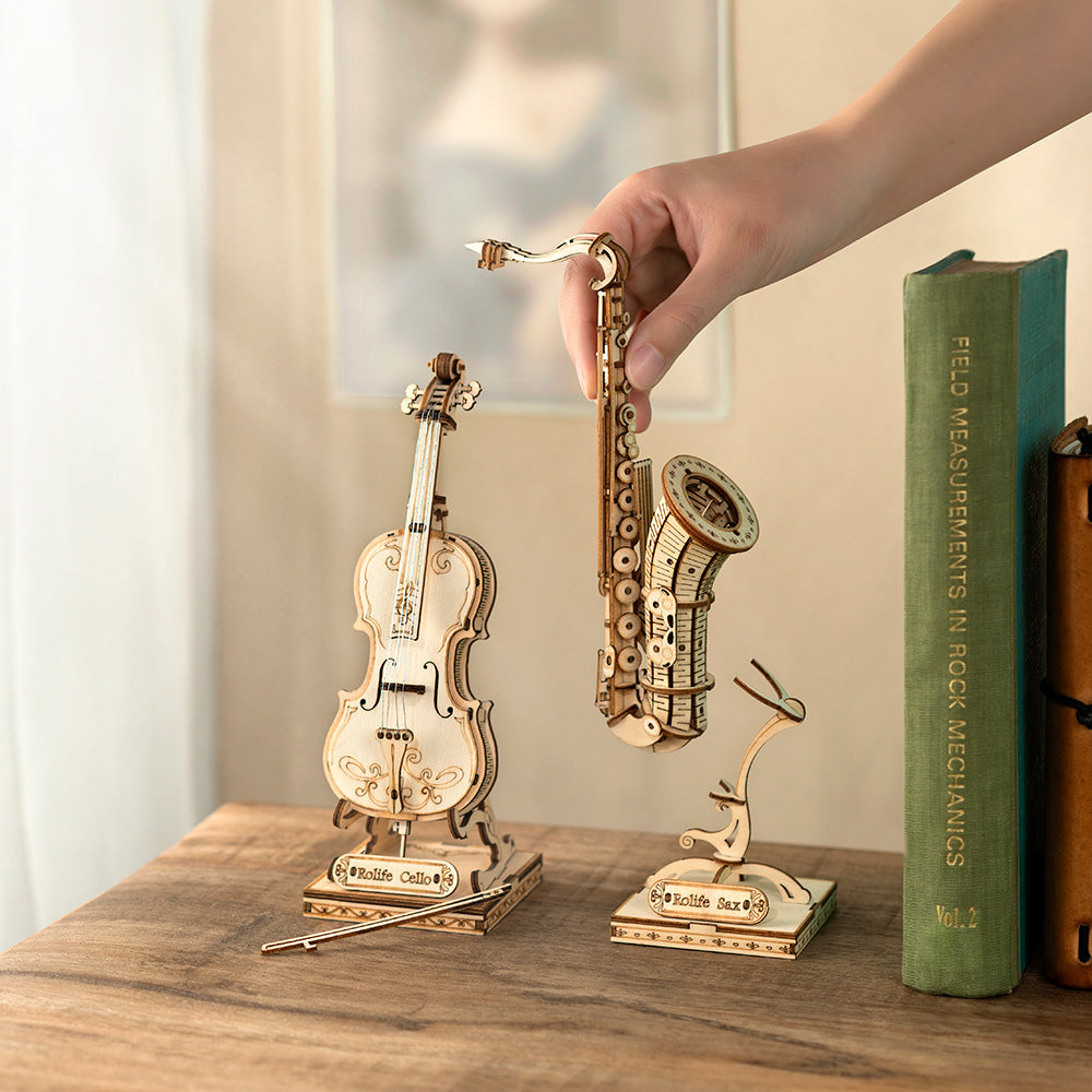 Este puzzle 3D de madera es una maqueta en miniatura de un violonchelo, perfecta como decoración de mesa o regalo único para los amantes de la música.
