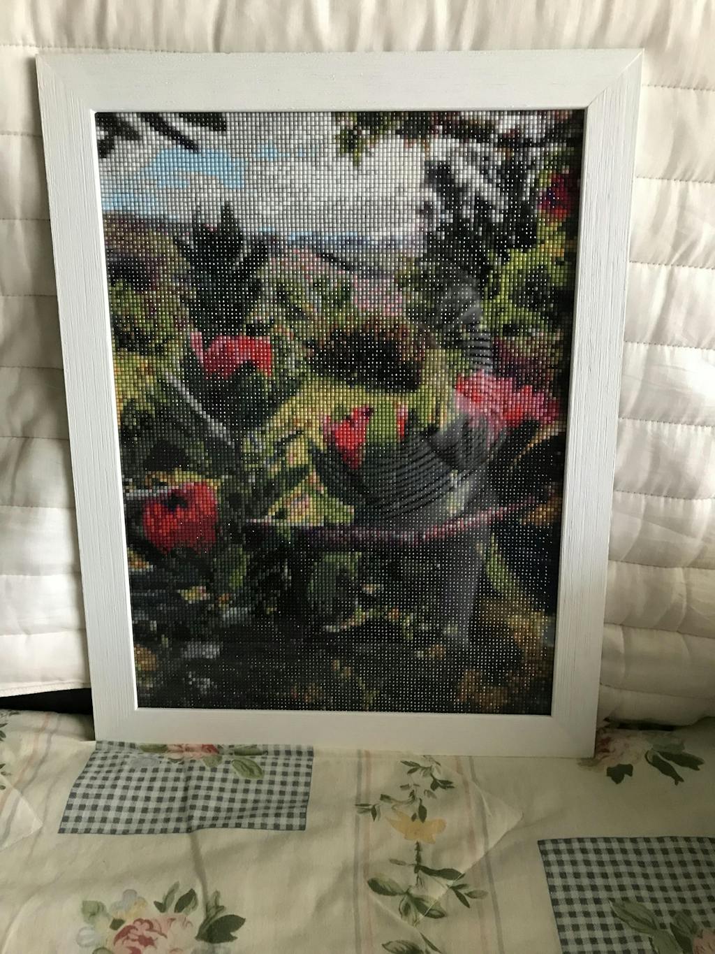 4) Una vez que haya terminado su bordado, presione ligeramente los diamantes con la mano o un libro para asegurar su retención final en el lienzo.