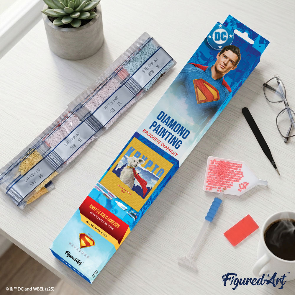 Modelo: Diamond Painting - Superman - Krypto con el skyline