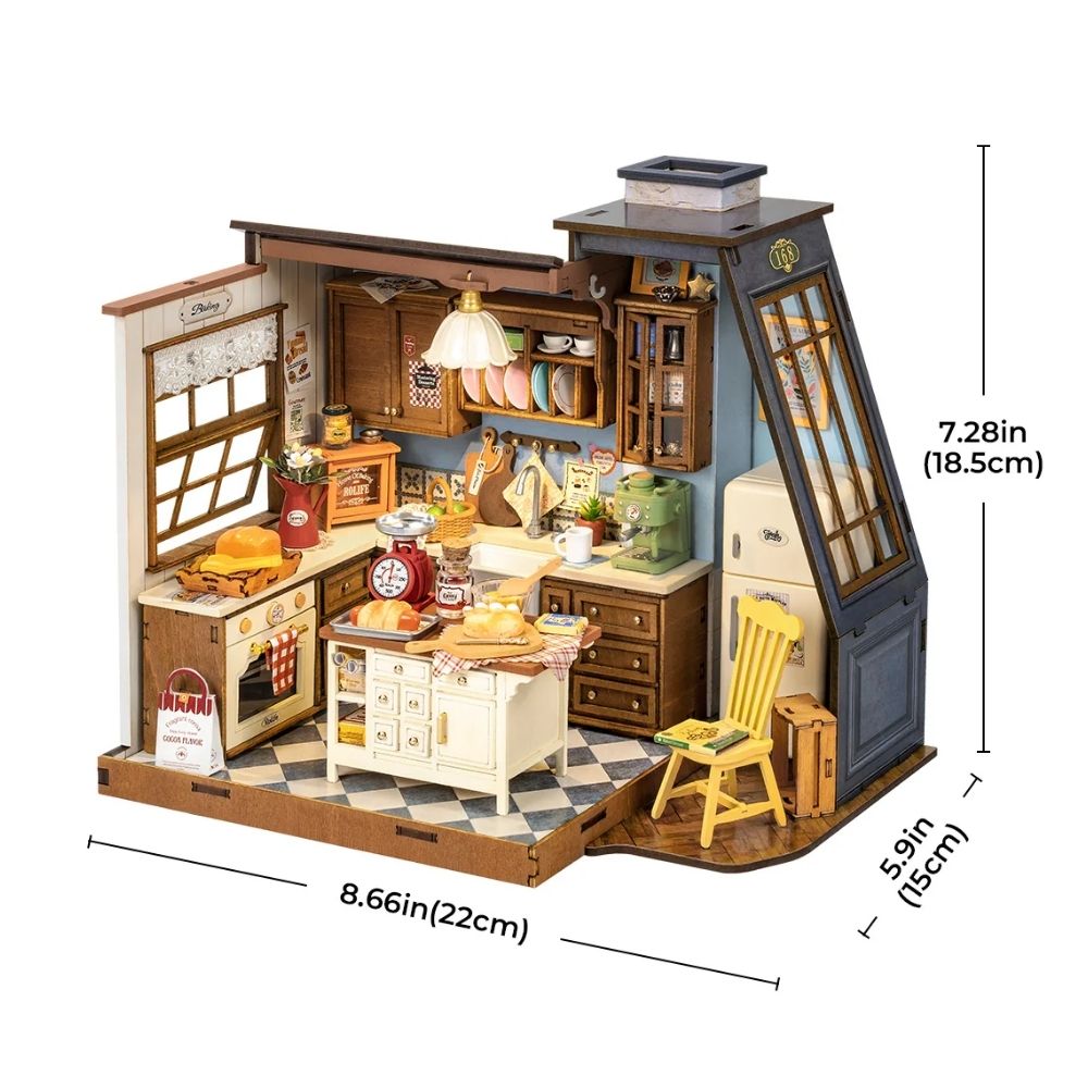La Casa Miniatura Cocina de Repostería es un regalo ideal para entusiastas del bricolaje, amantes de la cocina o coleccionistas de casas miniatura. Una vez completada, se convierte en una pieza decorativa cálida y llena de carácter.