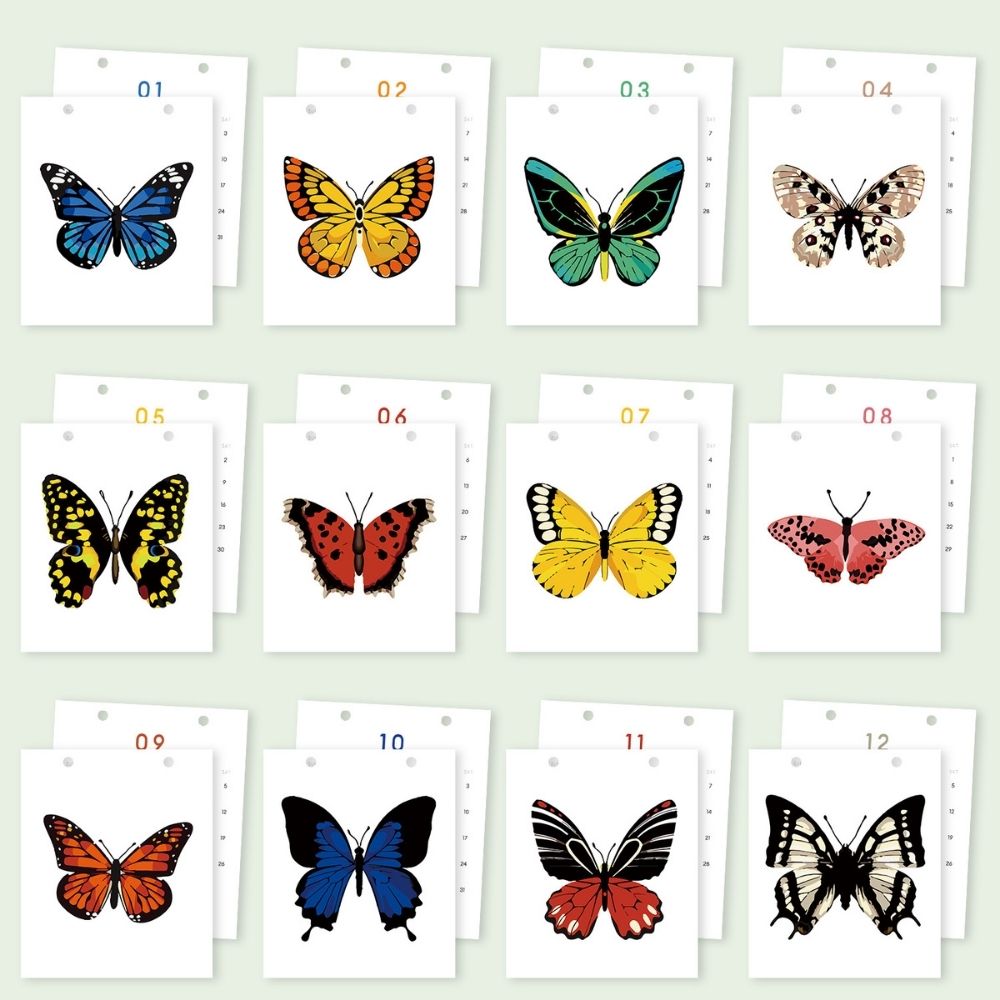 - Funcional & Artístico: Un calendario que se convierte en una galería de obras de arte de mariposas a lo largo del año.